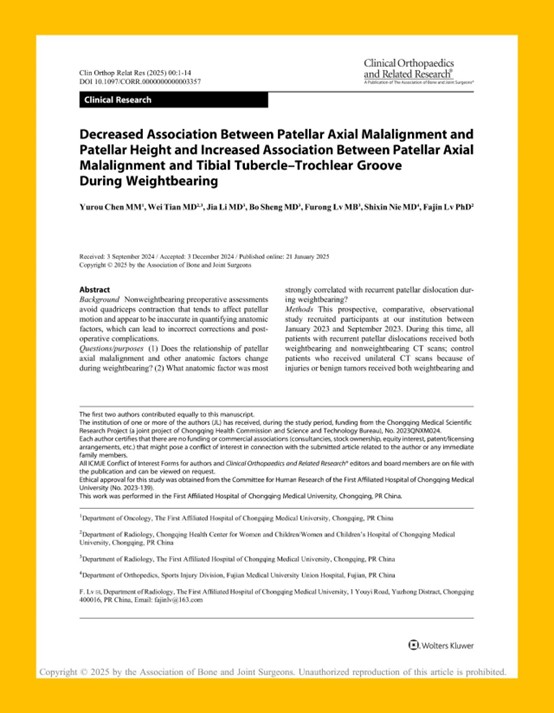 Chongqing, China – Uma equipa de investigação do Primeiro Hospital Afiliado da Universidade Médica de Chongqing publicou um estudo pioneiro na Clinical Orthopaedics and Related Research® (CORR), destacando a superioridade diagnóstica da tomografia computadorizada de feixe cónico com carga (CBCT) na avaliação da estabilidade patelar. O estudo, intitulado “Diminuição da Associação entre o Mau Alinhamento Axial da Patelar e a Altura Patelar e Aumento da Associação entre o Mau Alinhamento Axial da Patelar e a Eminência Tibial-Sulco Troclear durante a Carga”, fornece evidências convincentes de que a CBCT com carga WR-3D melhora significativamente a precisão da avaliação do mau alinhamento patelar em comparação com os métodos de imagem tradicionais.