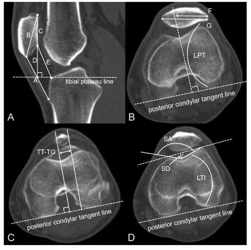 Foram avaliados os seguintes parâmetros anatómicos-chave: altura da patela, mau alinhamento axial (avaliado através do índice de desvio por bisecção e ângulo de inclinação), distância TT-TG e morfologia troclear (profundidade e ângulo do sulco). Todas as medições foram realizadas independentemente por dois radiologistas experientes, com um intervalo mínimo de quatro semanas entre as avaliações para garantir a fiabilidade.