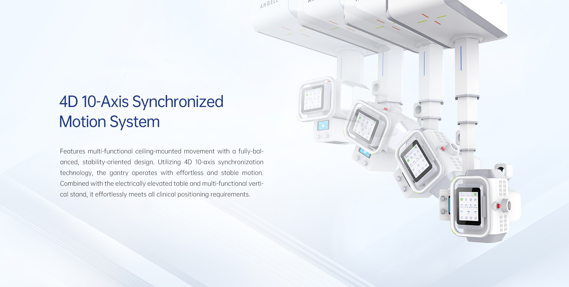 Apresenta movimento de teto multifuncional com design totalmente equilibrado e orientado para a estabilidade. Utilizando tecnologia de sincronização 4D de 10 eixos, o portal opera com movimento estável e sem esforço. Combinado com a mesa de elevação elétrica e o suporte vertical multifuncional, atende facilmente a todos os requisitos de posicionamento clínico.